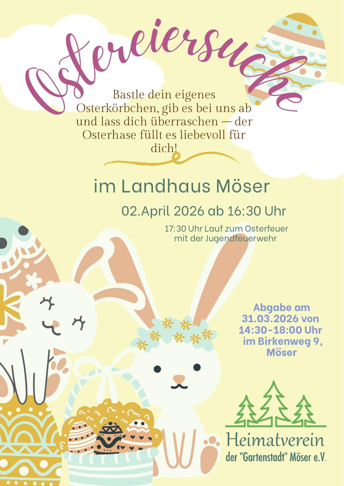 Bastle dein eigenes Osterkörbchen, gib es bei uns ab und lass dich überraschen -der Osterhase füllt es liebevoll für dich.
